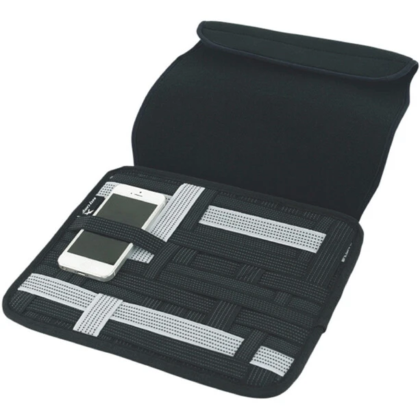 Système de rangement en tissu caoutchouté et extensible dans lequel on peut ranger soigneusement les différents appareils.